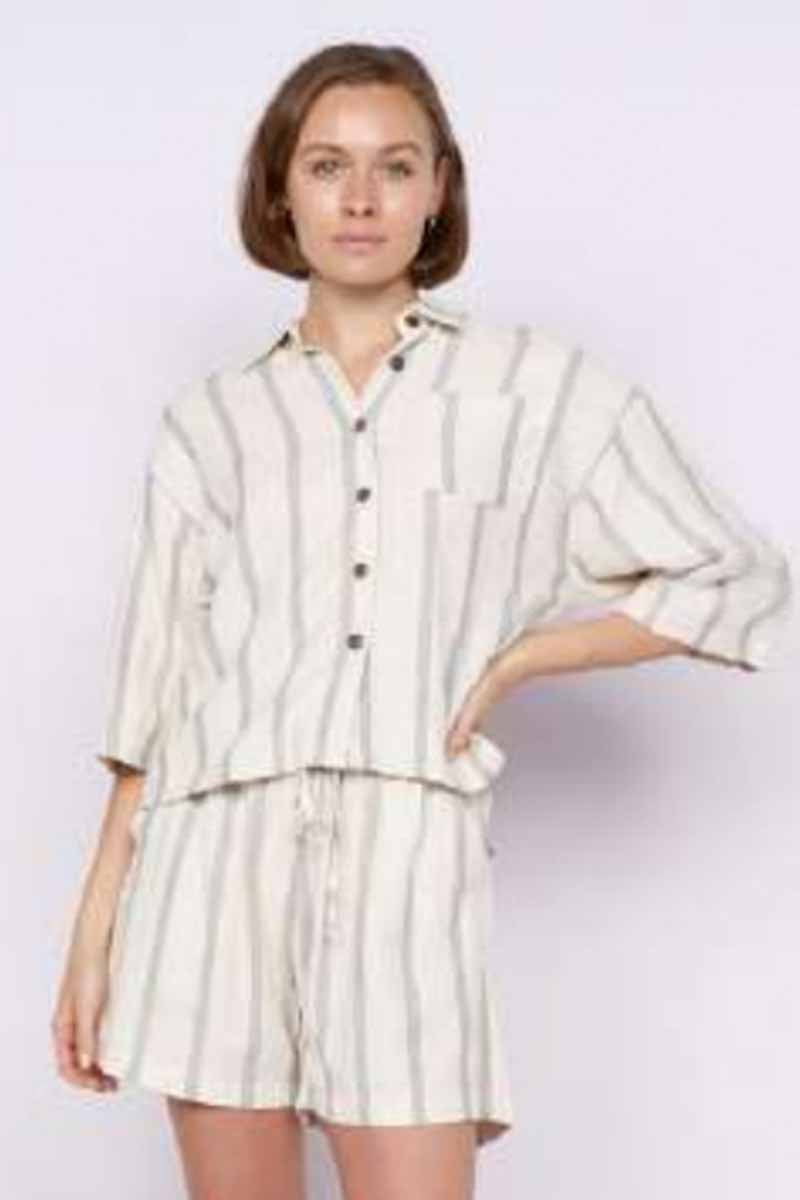 CARBON THE LABEL Nomad Linen Shirt - White/Black Stripe