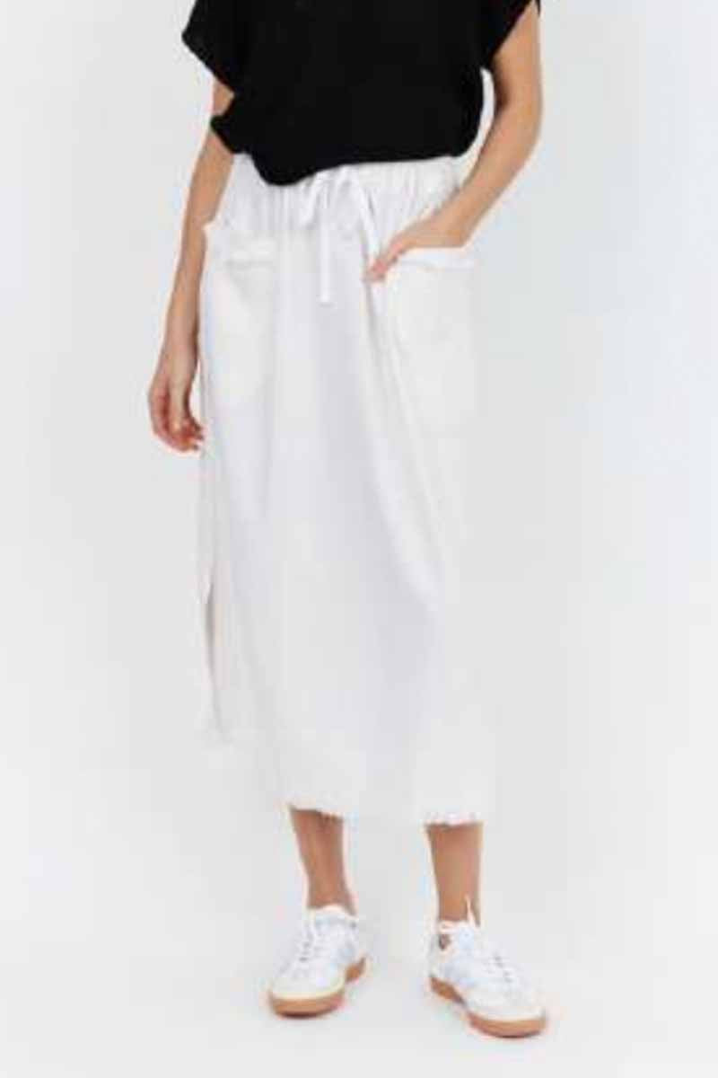 CARBON THE LABEL Joshua Frayed Linen Midi Skirt - White