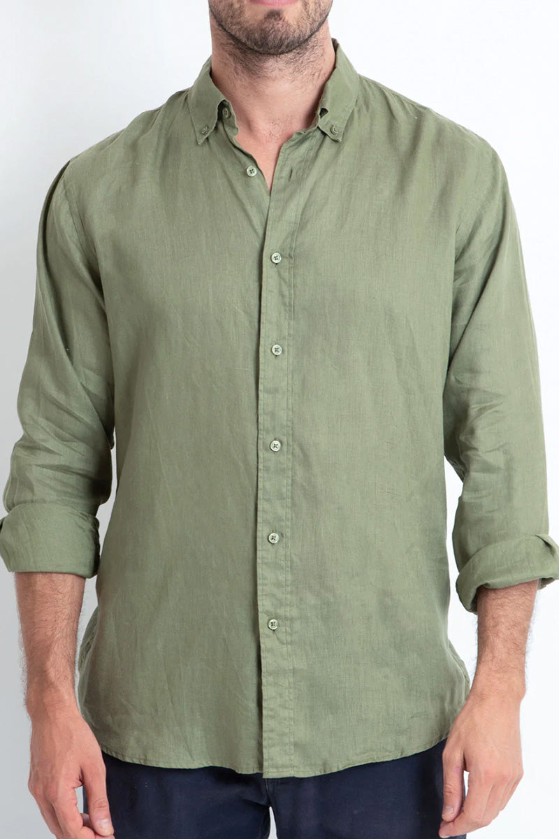 DESTii Long Sleeve Linen Shirt - Khaki