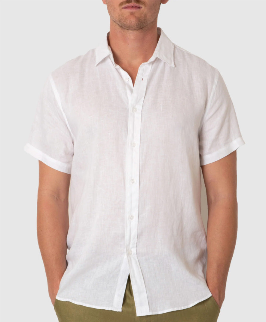 DESTii Short Sleeve Linen Shirt - White