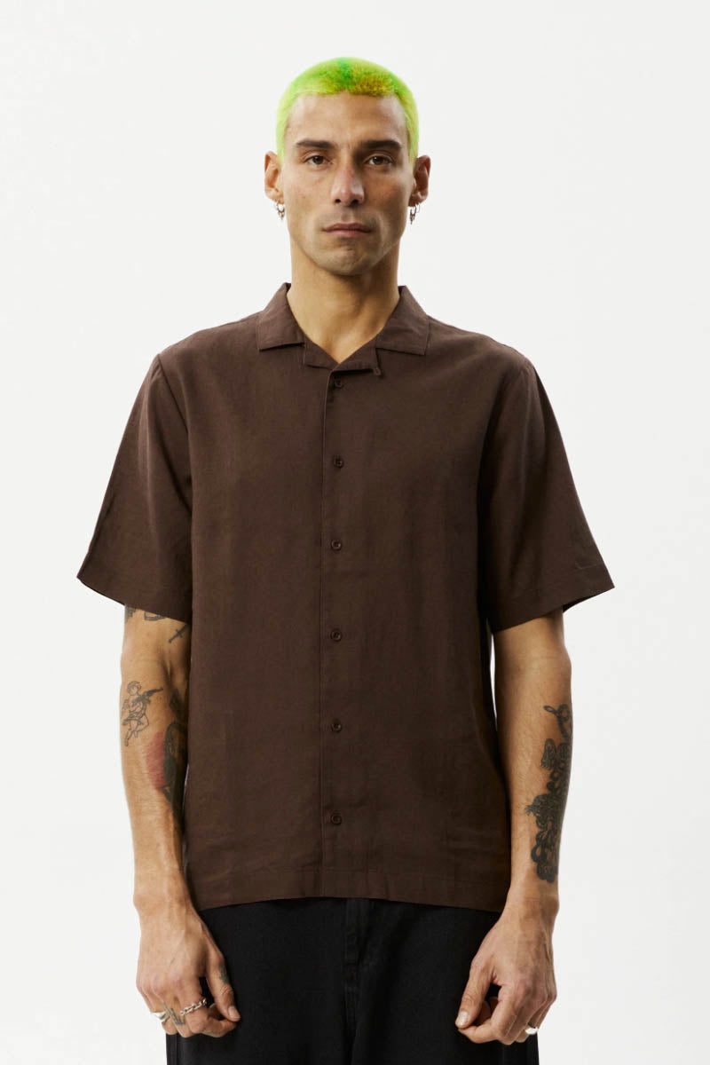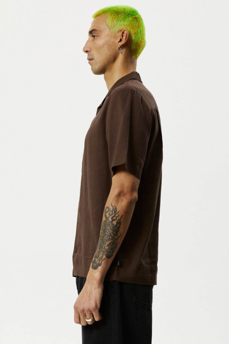 AFENDS - DAILY Hemp Cuban Short Sleeve Shirt - Coffee