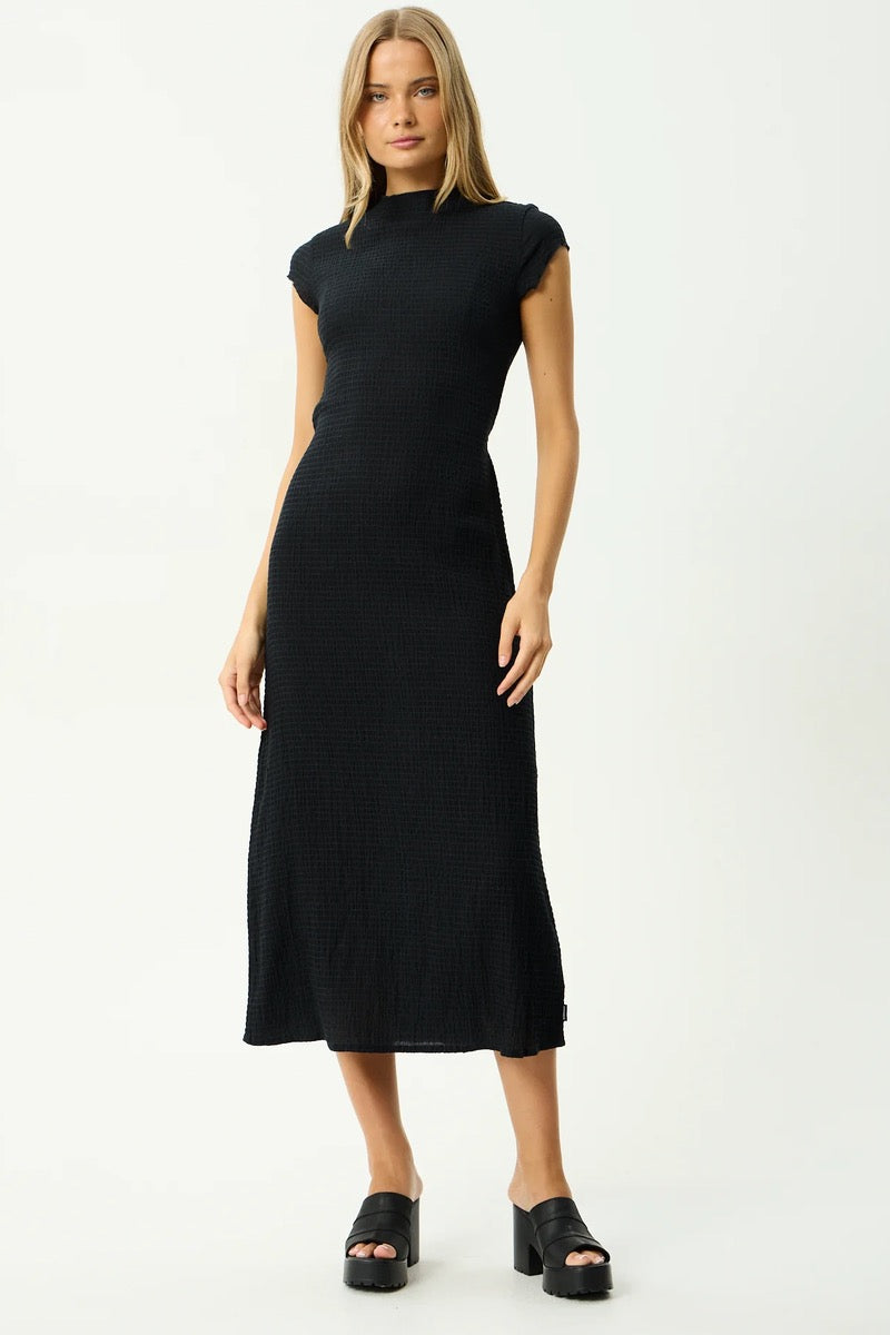 AFENDS Focus Elodie Seersucker Midi Dress Seersucker Midi Dress - Black