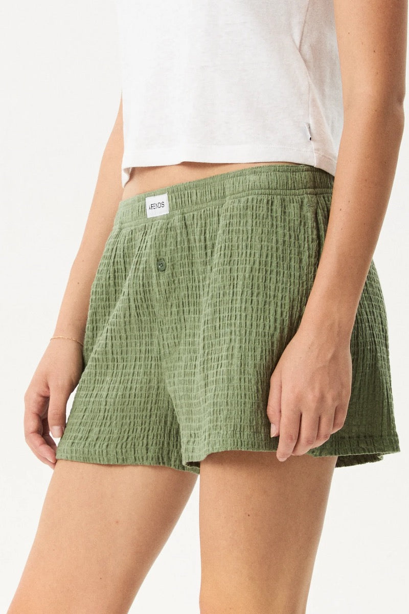 AFENDS Focus Seersucker Boxer Short – Oil Green