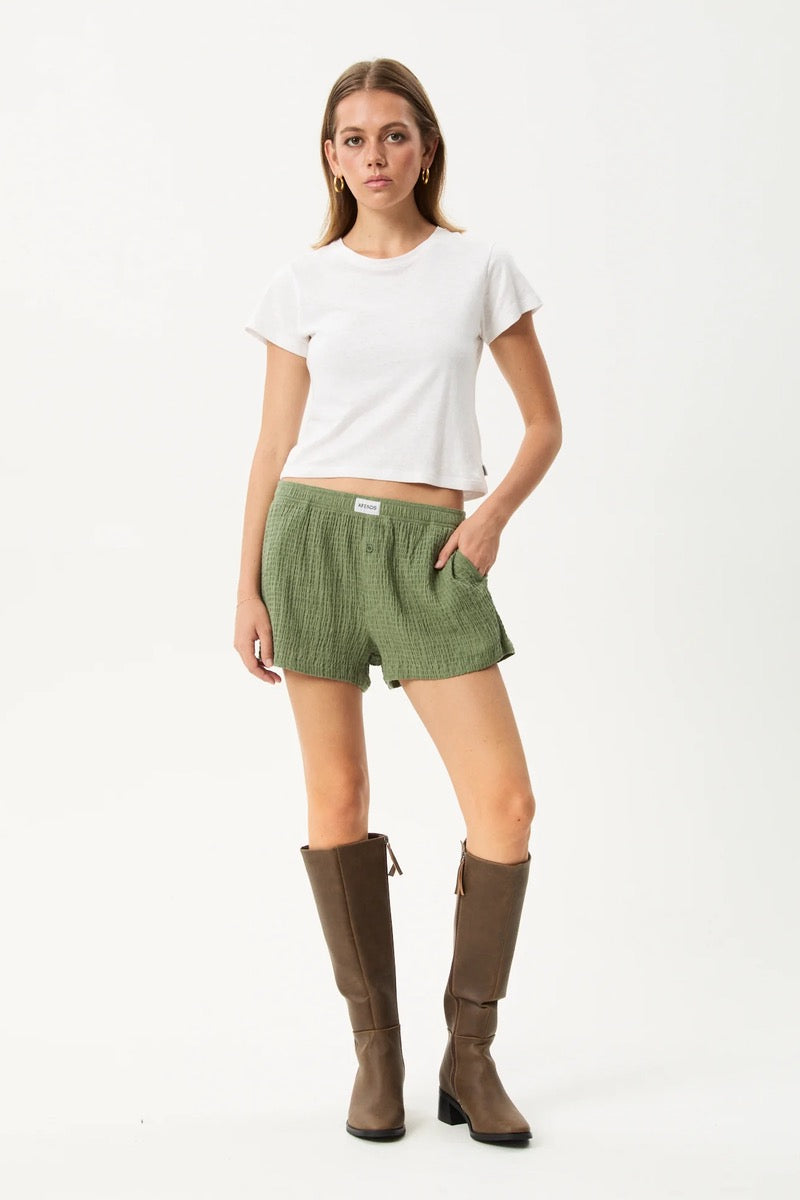 Keep it cool and casual with the Focus Seersucker Boxer Short by AFENDS. Crafted from soft organic cotton seersucker in a versatile oil green, these shorts combine comfort with effortless style. Featuring an elastic waistband, relaxed fit, and subtle texture, they’re perfect for lounging, layering, or pairing with your favourite AFENDS tops.