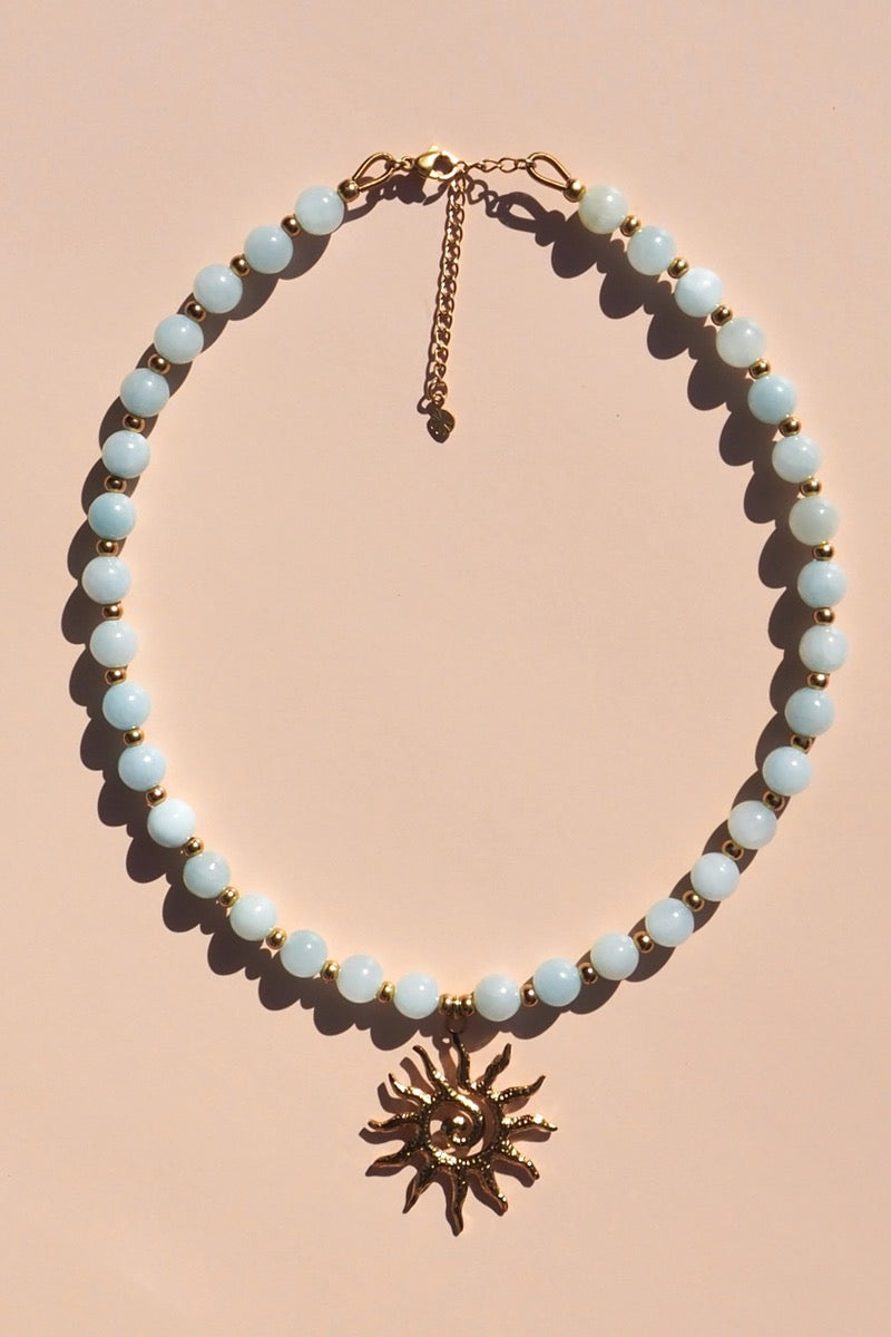 ALESI JEWELLERY Spiral Sun Blue Beaded Gemstone Necklace