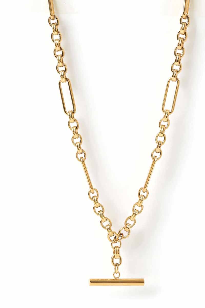 Our Duke Necklace is the perfect combination of modern chic and vintage style! Featuring a unique chain and finished off with a gold fob for extra class, this piece will keep you on-trend.