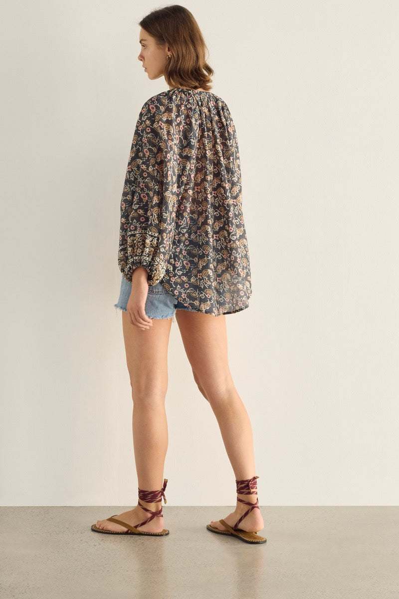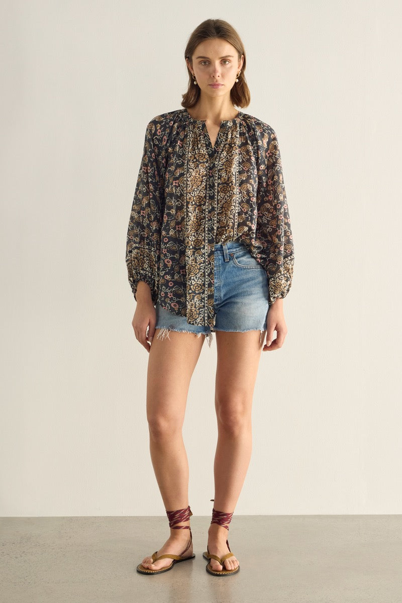 The delicate neckline, subtle gathering and lightweight fabric give it an elevated boho feel, while the elastic cuffs allow you to wear the sleeves full or slightly pushed up for a more relaxed look. Pair it with denim, tailored pants or a flowing skirt — it’s the ultimate versatile wardrobe staple.