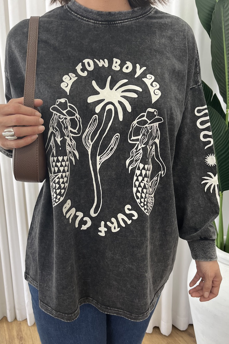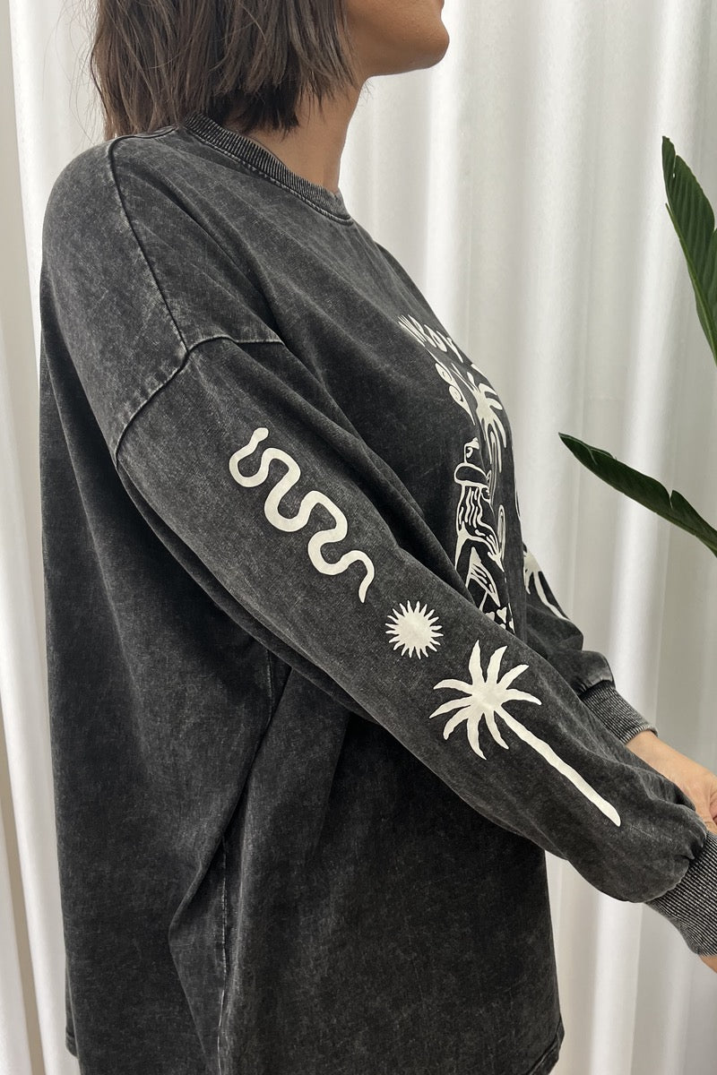 ONETEASPOON Callie Aviator Longsleeve Studded Denim Jumpsuit - Washed Black