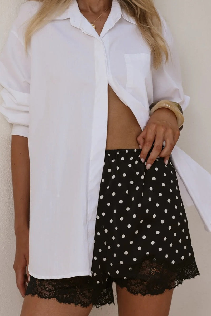 BY FRANKIE Lace Polk Dot Slip Shorts - Black