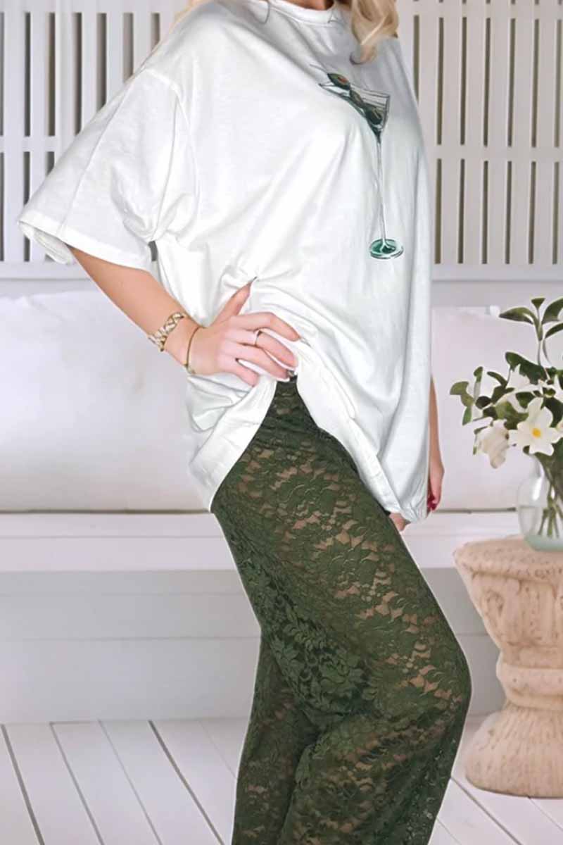 Add a splash of fun to your wardrobe with the By Frankie Martini T-Shirt. Designed for lovers of bold graphics and easy everyday style, this tee features a vintage-inspired martini print on ultra-soft cotton. With its relaxed fit, crew neckline, and timeless white base, it’s the perfect piece to pair with denim or dress up with tailored pants for a casual-chic look.