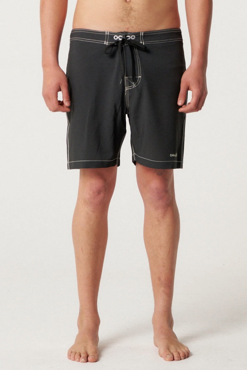 Meet the Cahoots — our all-timer fixed waist boardie. Built from a 4-way stretch poly/spandex, they’re made to keep up with marathon surfs and salty hangs. We’ve loaded them up with the good stuff: back pocket with key elastic and waterproof zip, contrast stitching, and even an extra eyelet so you can cinch the drawcord that extra notch when things get rowdy. The 17" leg length drops right on the knee. Our guy’s 6'1" in a size 32. Stick with your regular size and you’re sweet.