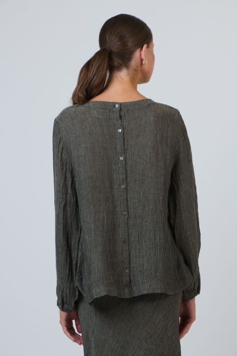Embrace effortless style and comfort with the GA644 Linen Top in a versatile Mussel shade. Crafted from 100% breathable linen, this long-sleeve top offers a relaxed fit that’s perfect for cooler days. Thoughtful details like a softly rounded neckline, button-down back, and gently gathered cuffs elevate casual dressing, giving the piece a refined, timeless feel. Ideal for layering or wearing on its own, GA644 combines warmth, ease, and understated sophistication.