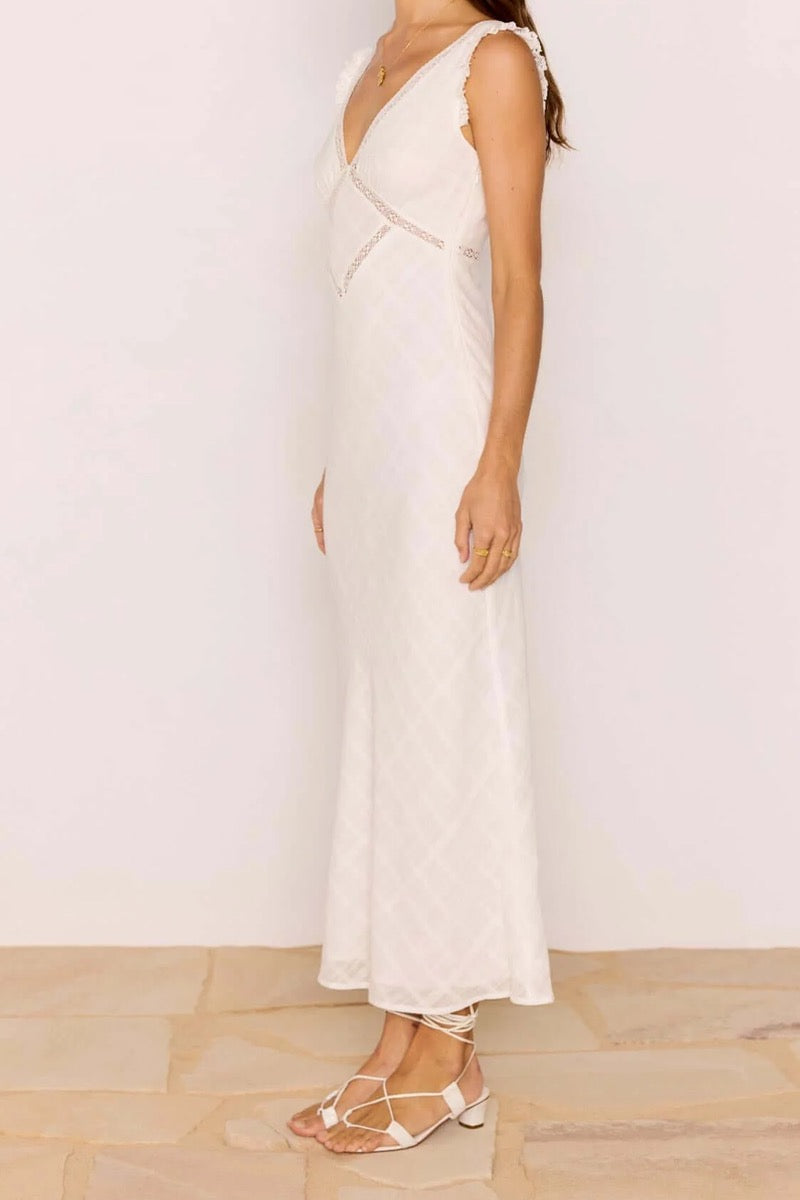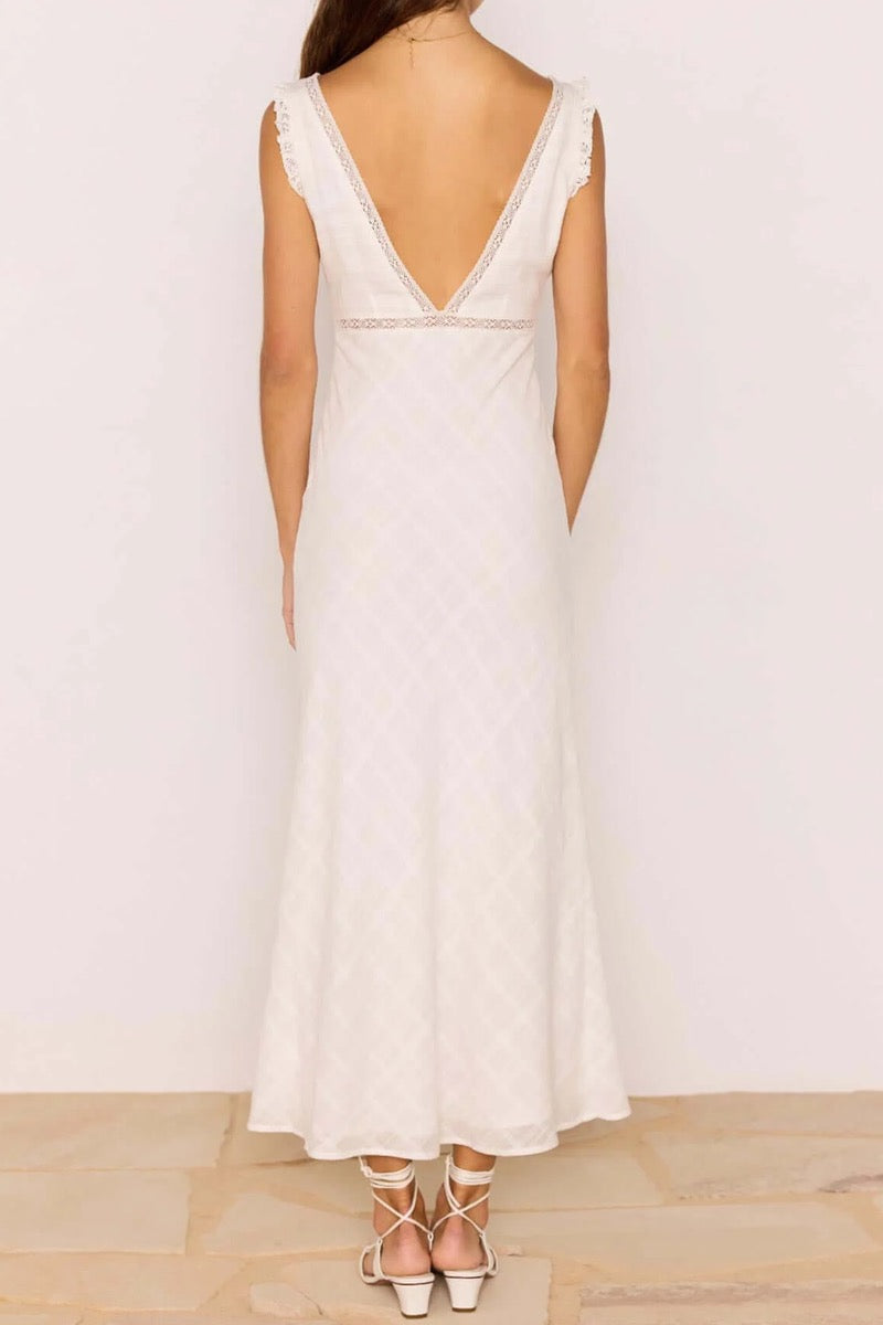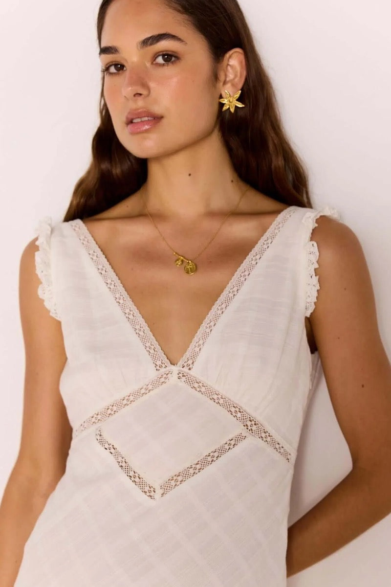 The Cypril Lace Detail White Cotton Midi Dress brings timeless elegance with a romantic edge. Cut from breathable cotton and lined in soft viscose, this white midi dress features a plunging V-neckline, delicate lace trim, and a figure-skimming silhouette. Perfect for long lunches, summer weddings, or elevated day-to-night dressing, it’s a wardrobe staple with effortless charm.