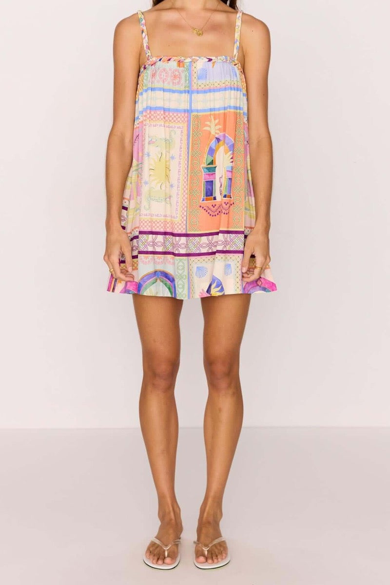 The Elysia Babydoll Mini Dress in Multicolour Print is a playful summer staple with a vibrant, tile-inspired print that feels straight out of a Mediterranean escape. Featuring a relaxed babydoll silhouette, adjustable straps, and a breezy mini length, this dress is perfect for throwing on over swimwear or styling with sandals for an effortless day-to-night look.