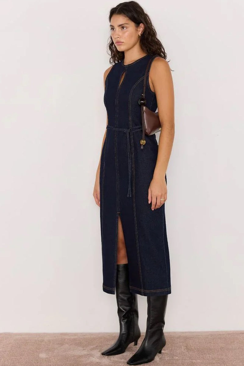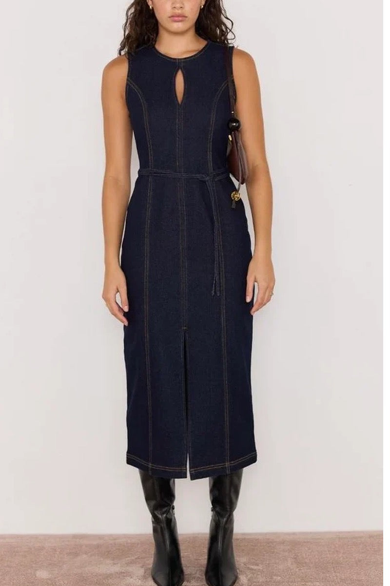 MINKPINK Raya Denim Belted Midi Dress – Indigo