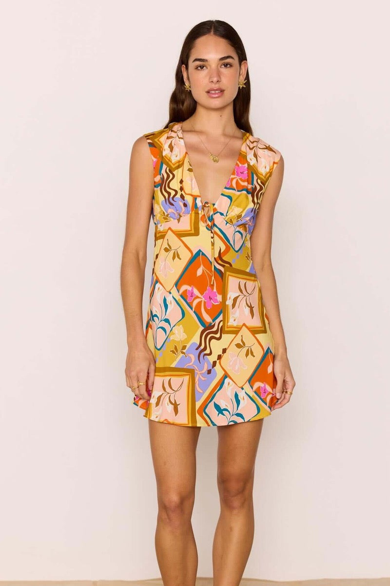The Rosin Mini Dress is your go-to summer mini with a bold, playful print and effortless silhouette. Cut from lightweight 100% viscose, it drapes softly over the body while offering a breathable and comfortable fit. Featuring a plunging neckline, subtle front detailing, and a flirty mini length, it’s the perfect dress to take you from daytime exploring to sunset cocktails.