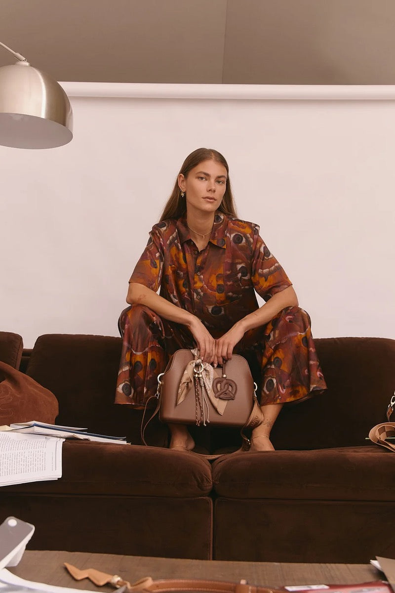 The Pretzel Puffie is a luxury leather bag charm that enhances your look with effortless sophistication and modern minimalism.