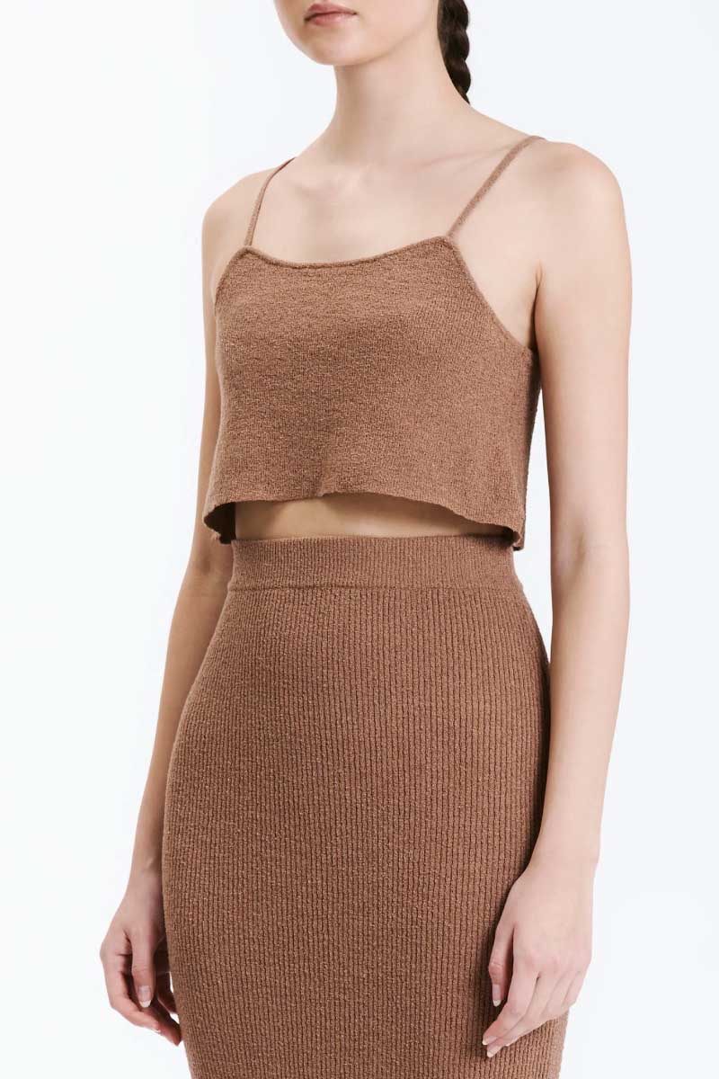 The Binx Cami is cut in a lightweight, textured knit with a dry handfeel quality. The silhouette is cropped in length with a relaxed fit through the body. Features include a sqaure neckline and spaghetti straps with adjusters.