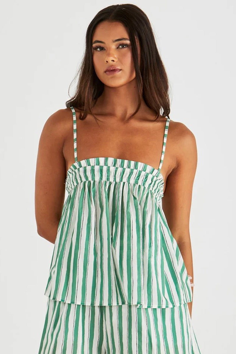 SASS CLOTHING Seraphina Cami - Green Stripe