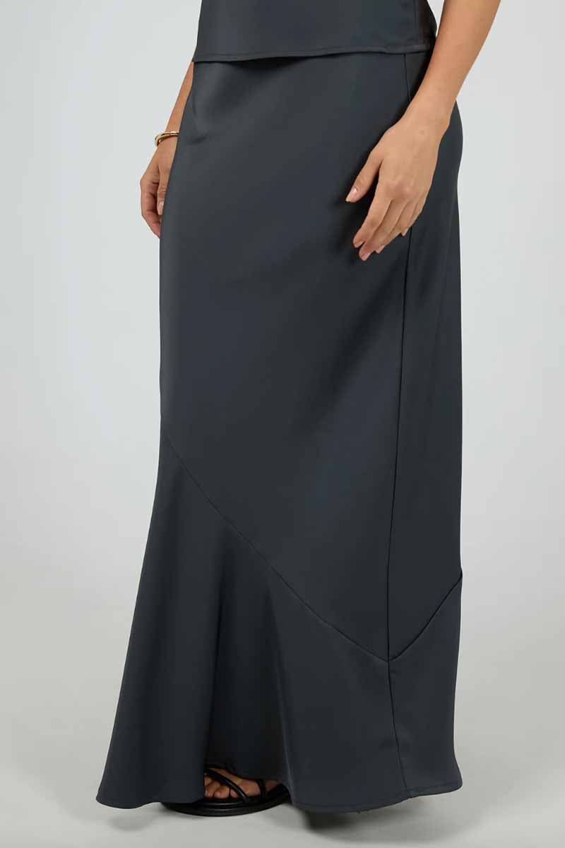 Looking to elevate your wardrobe, our Carter Maxi Skirt, will make the perfect addition to your wardrobe. Crafted from a thick crepe fabrication, this skirt features a hidden elastic waistband, seam detail with a flattering bias cut. Style with a basic oversized tee for a cool casual look or dress up with the Carter Tie Top.