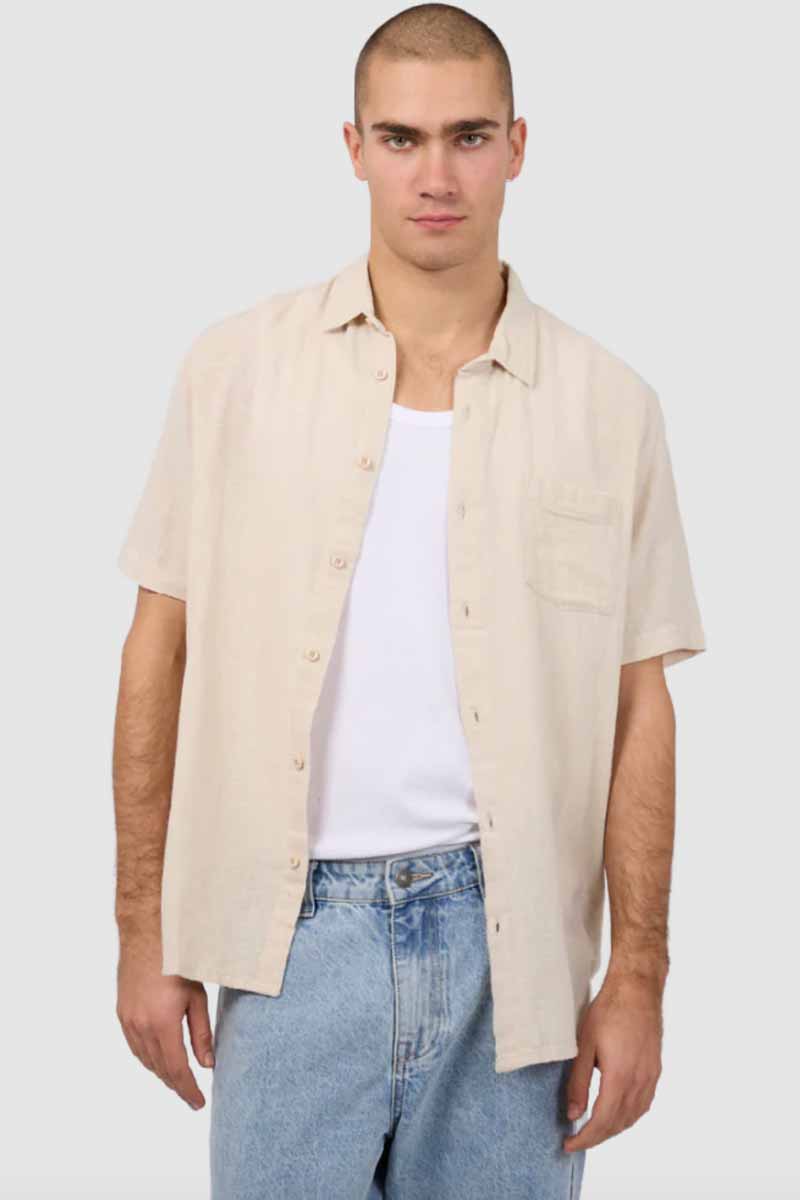 This Silent Theory Hemp Short Sleeve Shirt in Natural is a versatile wardrobe staple, crafted from comfortable and sustainable hemp fabric.