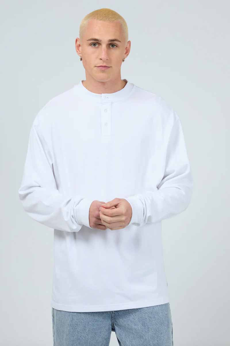 SILENT THEORY Henley LS Top - White