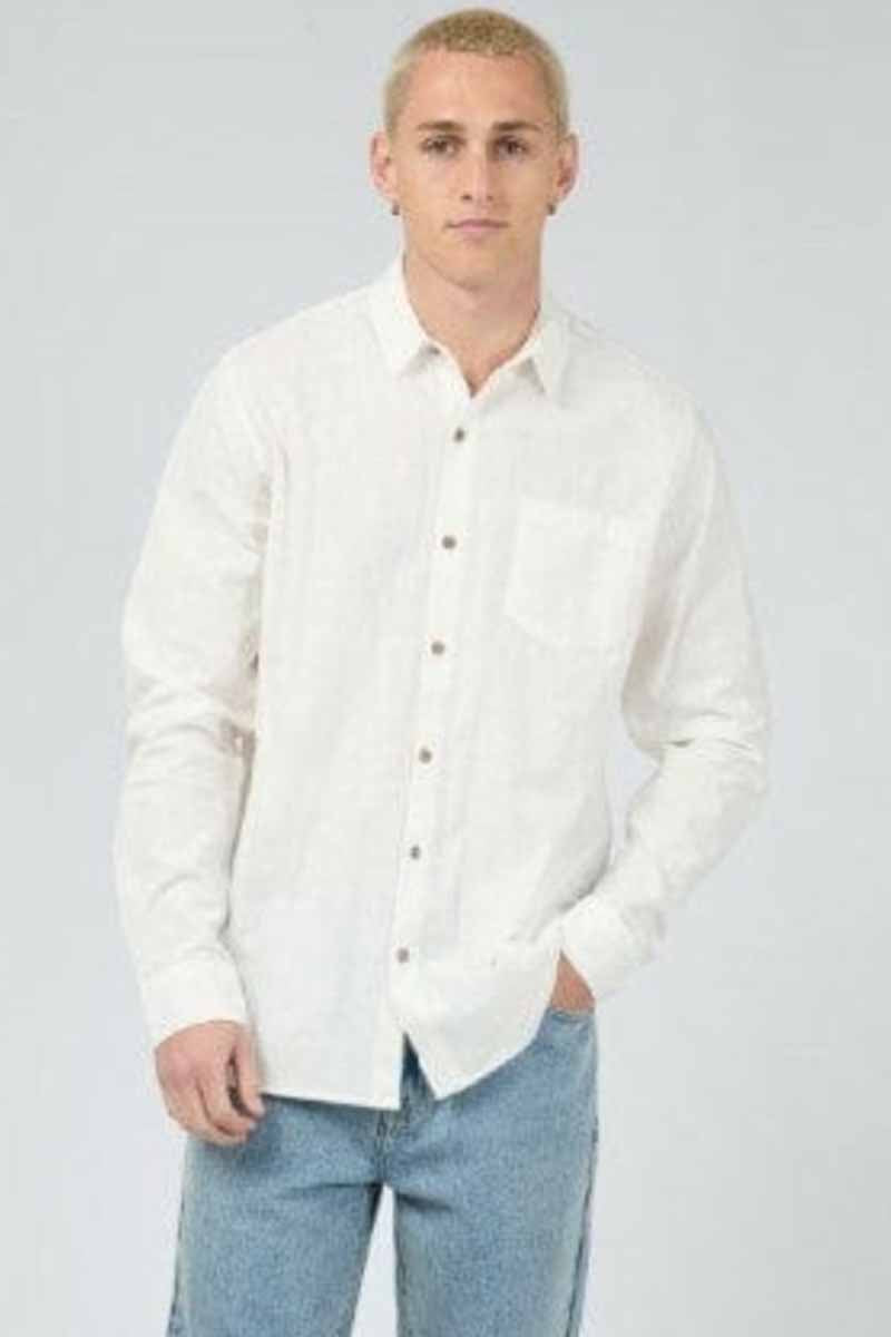 Silent Theory Men’s Textured Long Sleeve Shirt – Classic White, Elevated