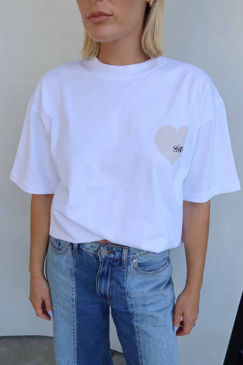 Introducing the SŚAINT Heart T-shirt in a new colour way - White and Cream. A small heart on the front, big love on the back, our best selling unisex tee is back and better than ever.