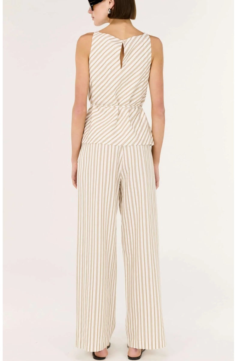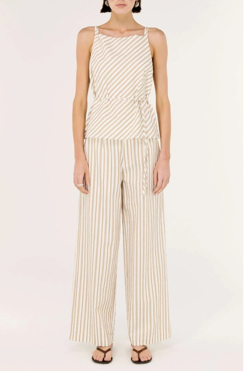 STAPLE THE LABEL Lola Tie Waist Top – Taupe/White Stripe