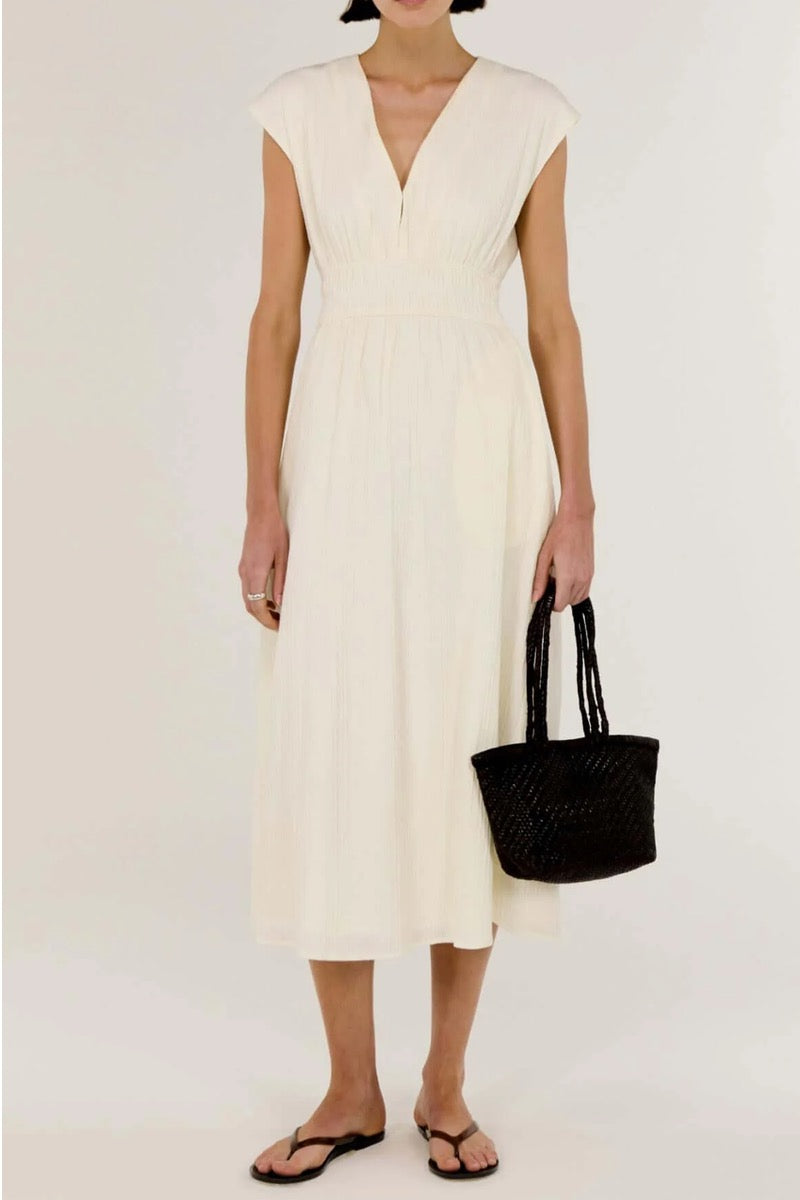 STAPLE THE LABEL Ode V Neck Midi Dress – Vanilla