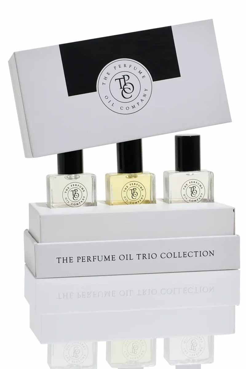 A three piece gift box containing a trio of 5mL top-selling fragrances within a category.