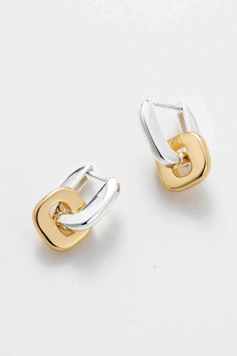 The Ella Earring – Two Tone offers a modern twist on our signature double link hoop. Featuring a mix of gold and silver tones, this versatile piece can be worn with or without the detachable link, giving you two stylish looks in one. Perfect for those who love to mix metals, the Ella Two Tone Earring is a bold, contemporary addition to any jewelry collection.
