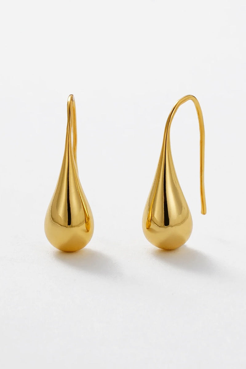 Sleek and sculptural, the Nova Earring features a fluid teardrop silhouette with a polished gold finish. Effortlessly elegant, this design makes a modern statement while remaining lightweight and comfortable for all-day wear. Perfect for elevating everyday outfits or adding a sophisticated touch to evening looks.