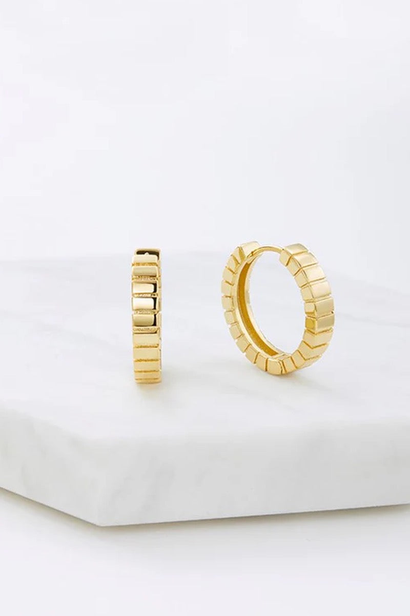 The Willow Hoop is a medium-sized hoop earring that features refined ridge detailing around the hoop, adding texture and interest to a classic silhouette. Designed to complement the Willow Bracelet, this hoop pairs perfectly to create a cohesive, elevated look.
